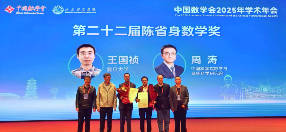 2025年10月17日,中国数学会2025年学术年会在山东滨州召开。大会开幕式上公布了2025年中国数学会三大奖项获奖名单。我所周涛研究员荣获第二十二届陈省身数学奖。